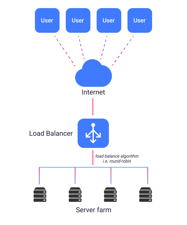 In the case that one of your servers goes down, the load balancer will redirect traffic to the remaining online servers. Moreover, when upgrading your infrastructure by introducing new servers, the load balancer automatically starts to send requests to it.